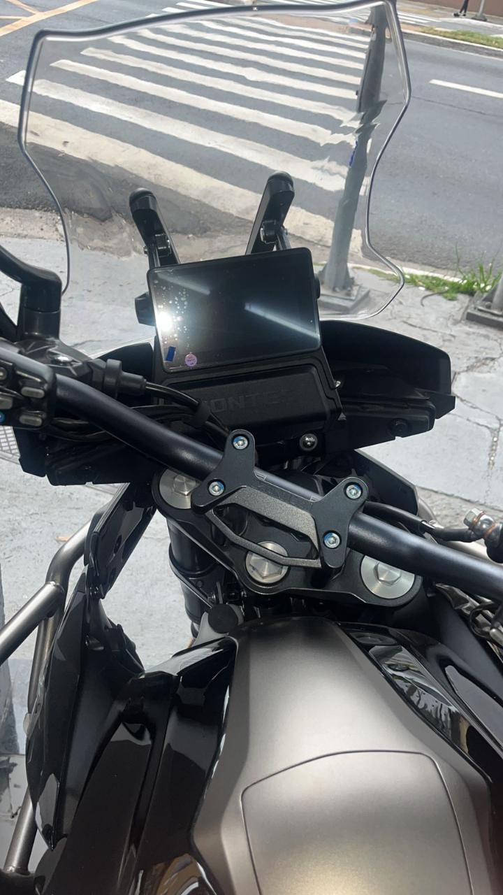 A moto possui iluminação Full LED, painel TFT com conectividade Bluetooth, ignição presencial Keyless Geração 2.5 e para-brisa com ajuste elétrico. Inclui sensores de pressão e temperatura dos pneus, tomadas USB e USB-C, além de abertura elétrica do tanque e banco, protetores de mão e carenagem, e suporte para bagageiro.
